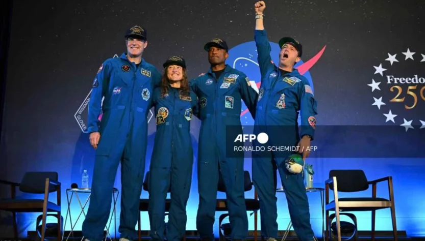 Houston, 12 de abril de 2026.- Los astronautas de Artemis II hicieron sus primeras declaraciones tras regresar sanos y salvos de su histórica misión este sábado, en un acto en Houston. El evento tuvo lugar en el Johnson Space Center de la NASA.