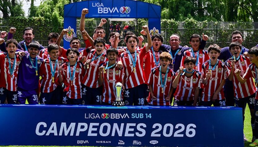 Ciudad De México, 12 de abril de 2026.- Chivas derrotó 3-0 a Pachuca en la final del Torneo Sub-14 de la Liga BBVA MX, disputada en las instalaciones de la Federación Mexicana de Fútbol, para coronarse como monarca de la categoría.