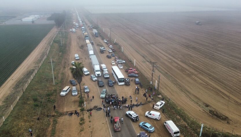 En Baja California, jornaleros agrícolas y docentes de la CNTE realizaron bloqueos en la carretera Transpeninsular, específicamente en los puntos de Camalú y San Quintín. Según reportes locales, el bloqueo en San Quintín inició alrededor de las 06:40 horas con la quema de llantas, involucrando inicialmente a entre 60 y 70 personas, cifra que aumentó posteriormente a más de 100 participantes. Marco Antonio Pacheco Peña, coordinador estatal de la CNTE en la región, junto con el manifestante Damián Martínez Cruz, explicaron las causas que motivaron estas acciones en la zona agrícola.