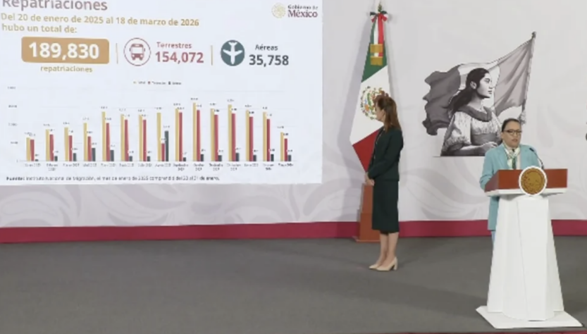 Ciudad de Mexico, 20 de marzo de 2026.- La Secretaría de Gobernación (Segob) informó que entre el 20 de enero de 2025 y el 18 de marzo de 2026 fueron deportados 189,830 ciudadanos mexicanos desde Estados Unidos, durante la administración del presidente Donald Trump. La titular de la dependencia, Rosa Icela Rodríguez, presentó los datos este 19 de marzo en la conferencia matutina del gobierno federal, donde también expuso los detalles del proceso de recepción y los beneficios entregados a los repatriados.