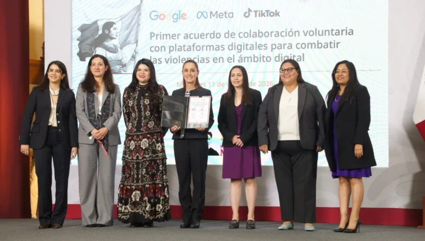 México, 12 de marzo de 2026.- El gobierno de la presidenta Claudia Sheinbaum firmó este miércoles 11 de marzo un acuerdo de colaboración voluntaria con las empresas Google, Meta y TikTok para combatir la violencia digital contra mujeres y adolescentes en México. El convenio fue impulsado por la Secretaría de las Mujeres y la Agencia de Transformación Digital y Telecomunicaciones.