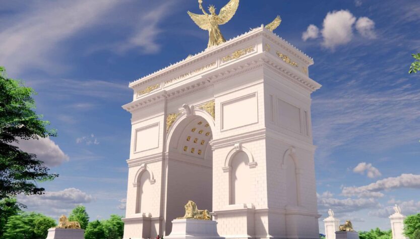 El arco tendría más de 75 metros de altura, lo que representa más del doble del tamaño del Monumento a Lincoln, el cual mide aproximadamente 30 metros. La estructura se instalaría en una pequeña parcela ubicada entre el Monumento a Lincoln y el Cementerio Nacional de Arlington. Según los detalles del proyecto, el arco se alzaría también sobre el cementerio cercano, dejándolo sin vistas.